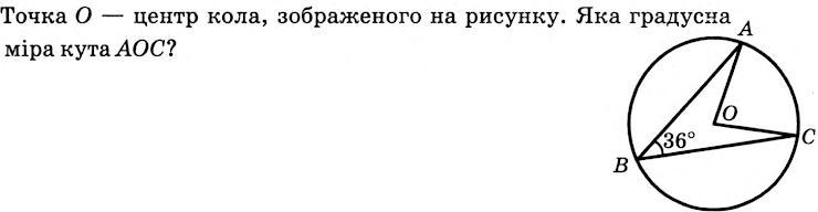 ∠BAC=36° і є вписаним, тоді ∠AOC=2·36°=72°