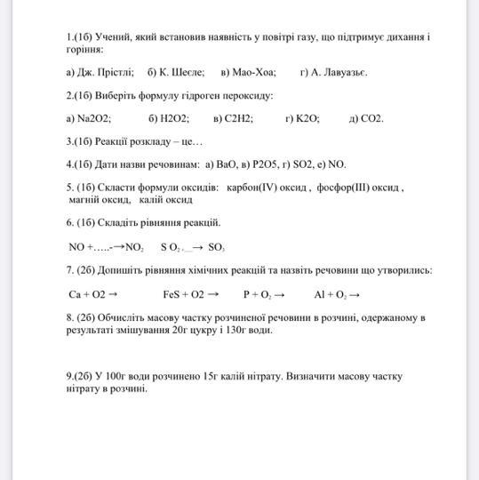4. Барій оксид, фосфор(V) оксид, сульфур(IV) оксид, нітроген(II) оксид