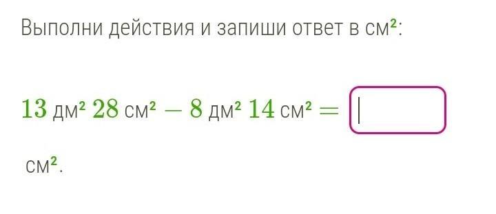13 дм(в квадрате)28см(в квадрате)-8 дм(в квадрате)14см(в квадрате)=5 дм (в квадрате) 14 см (в квадрате)