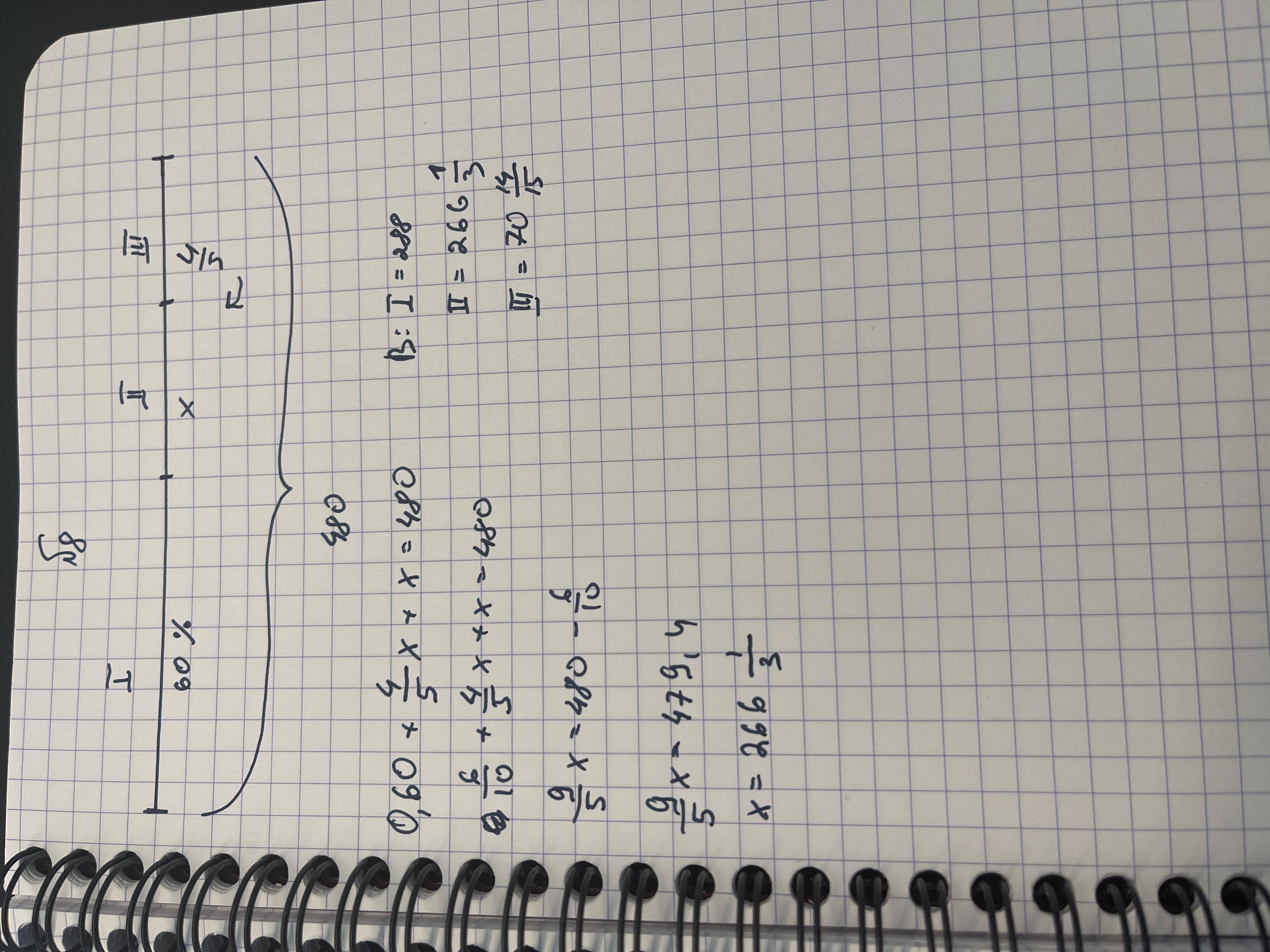 288 + 106. 2/3 + 85. 1/3 = 479. 3/3 = 480