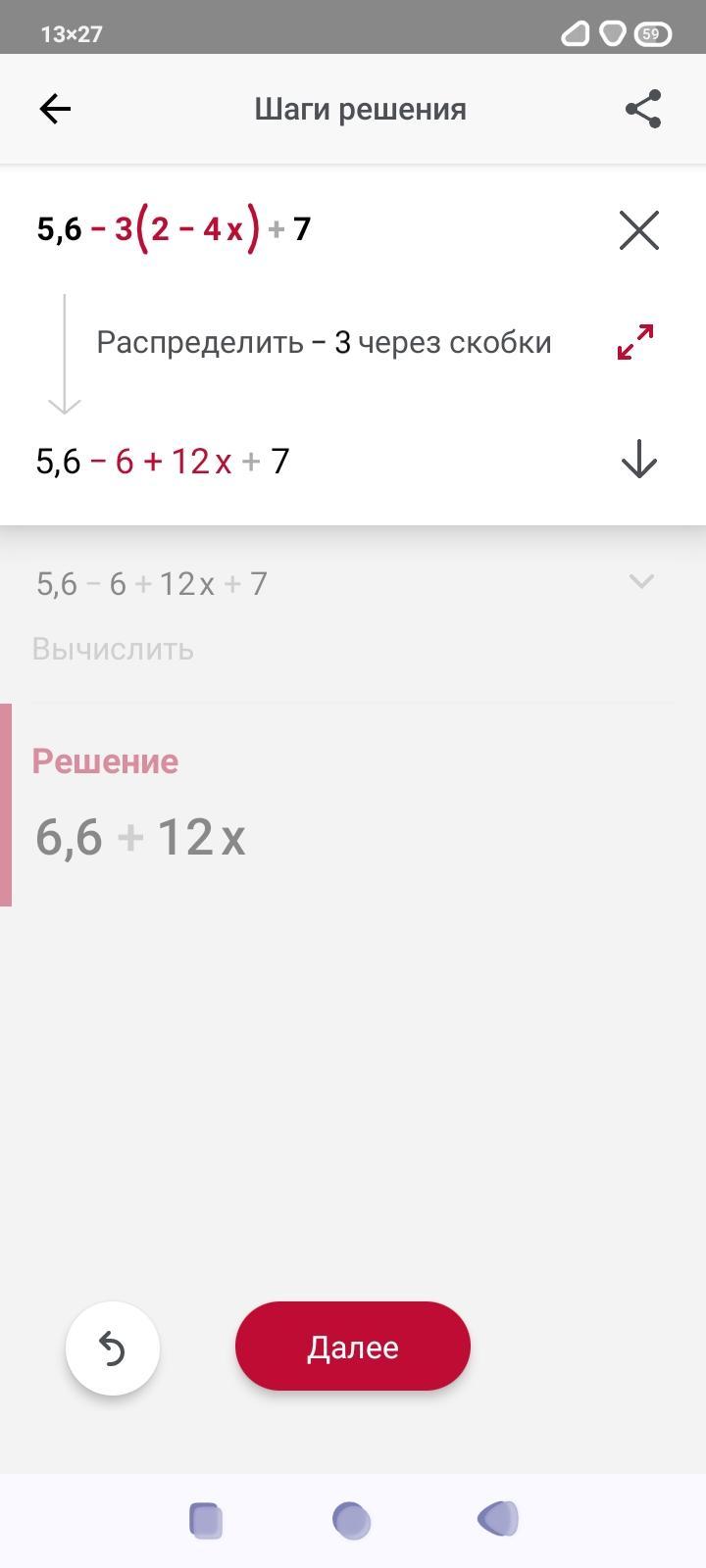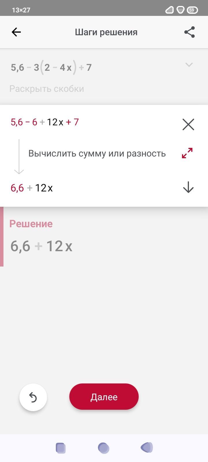 5,6 - 3(2-4x) + 7 = 5,6 - 6 + 12х + 7 = 6,6 + 12х
