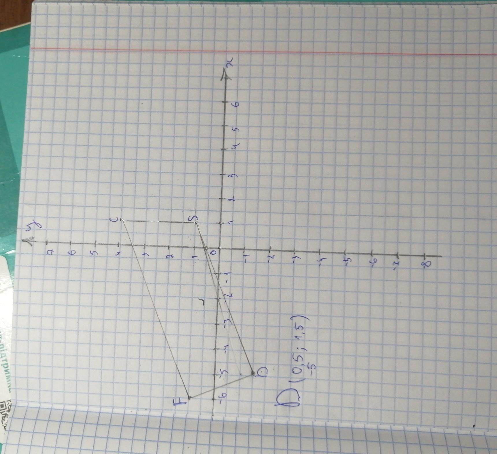 задано координати трьох вершин прямокутника CSFD C(1;-4);S(1;1)F(-6;1)Побудувати ці точки і знайти Коордиати точки D