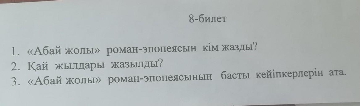3.Абай, Дармен, Базаралы, Тогжан, Ийс апа, Дильда, Шоже, Биржан,