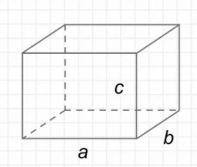 - Объем прямоугольного параллелепипеда равен произведению трех его измерений - ширины, длины, высоты: V = abc.