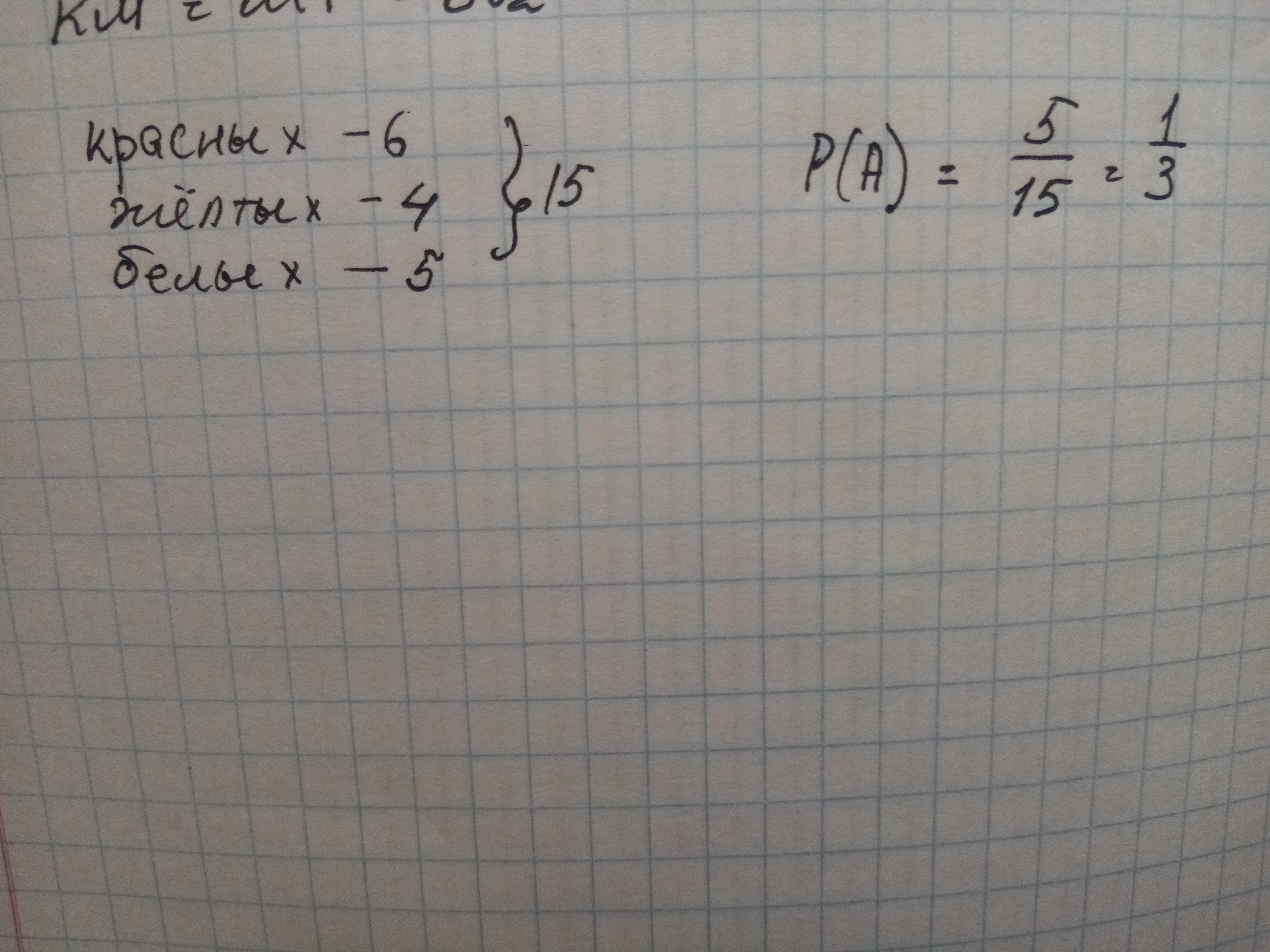 В коробке надохиться шесть красных, четыре жельтых и пять белых шаров. Какова вероятность того, что вынутый наугад шар окажется белым