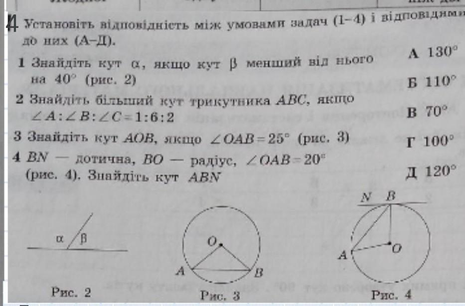 4. Трикутник АОБ - рівнобедрений. АО=ОВ (радіуси) відповідно кути ОАБ=АВО=20°. Кут NBO=90° т. я. ВО - перпендикуляр, тому що радіус опущений до дотичної являється перпендикуляром. Знайдемо кут АВN: