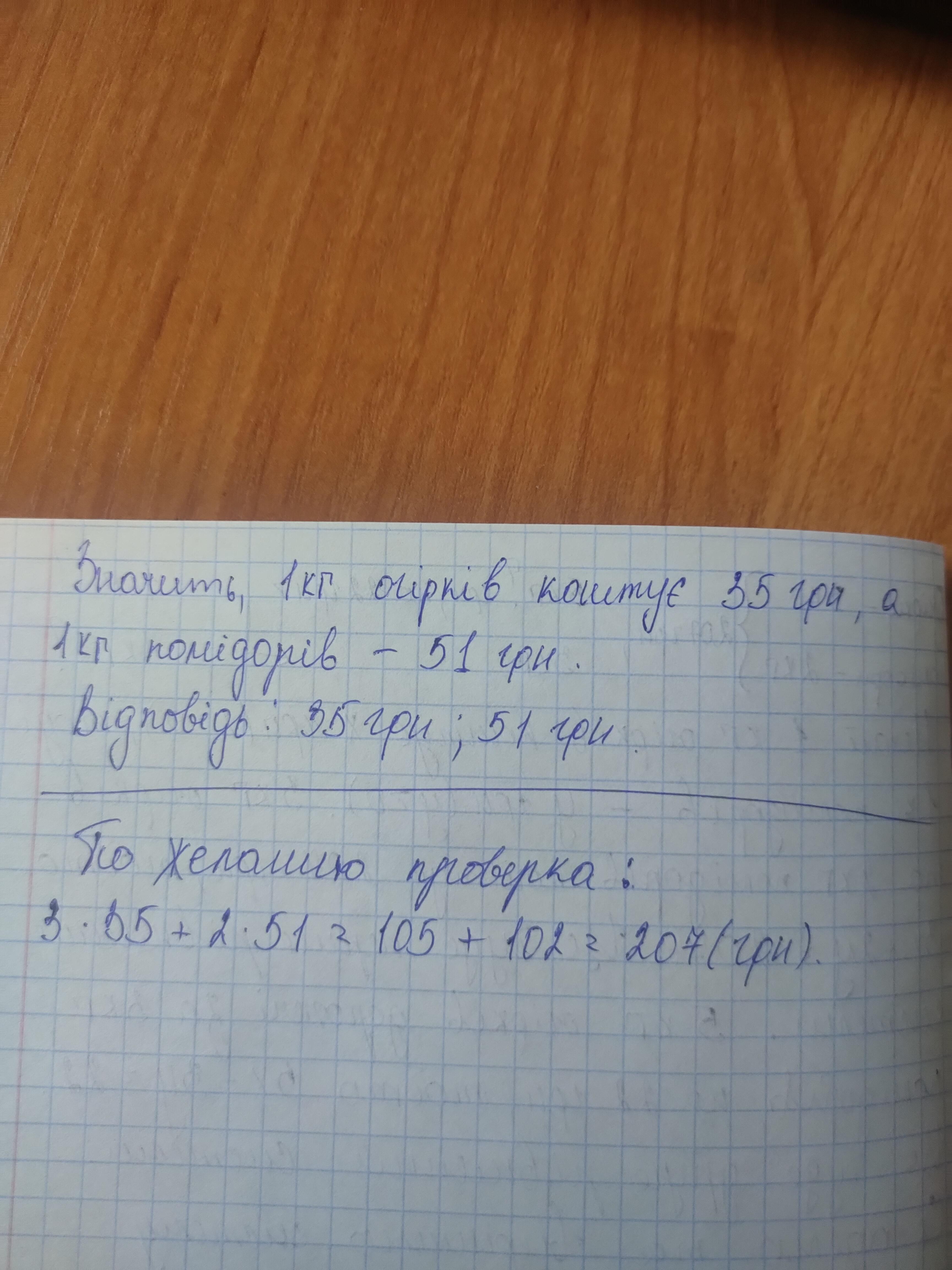 За три кілограми огірків і два кілограми помідор заплатили 207 гривень .Скільки коштує 1 кг огірків і 1 кг помідор ,якщо 5 кг огірків дорожчі за 3 кг помідор на 22 гривні.