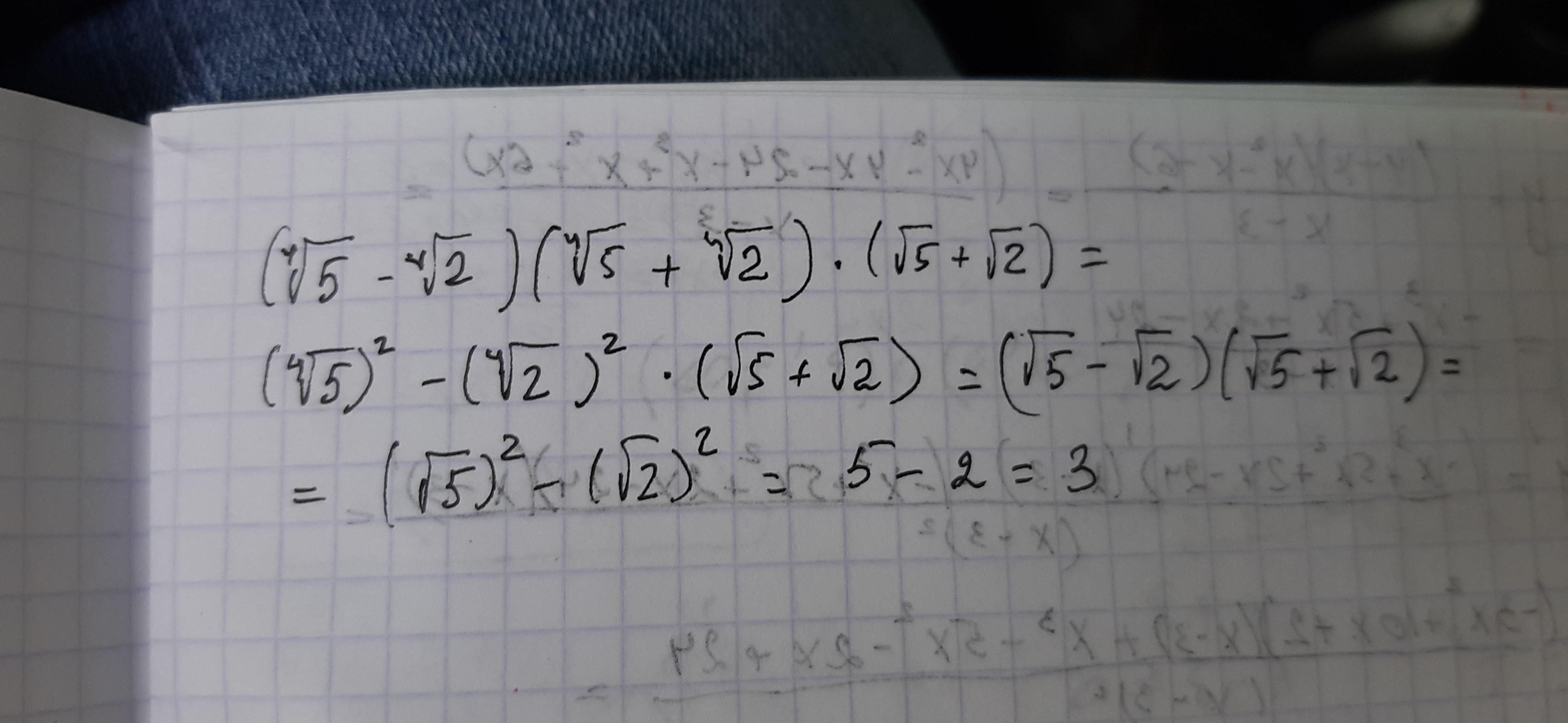 Обчисліть значення виразу (⁴√5-⁴√2)•(⁴√5+⁴√2)•(√5+√2)