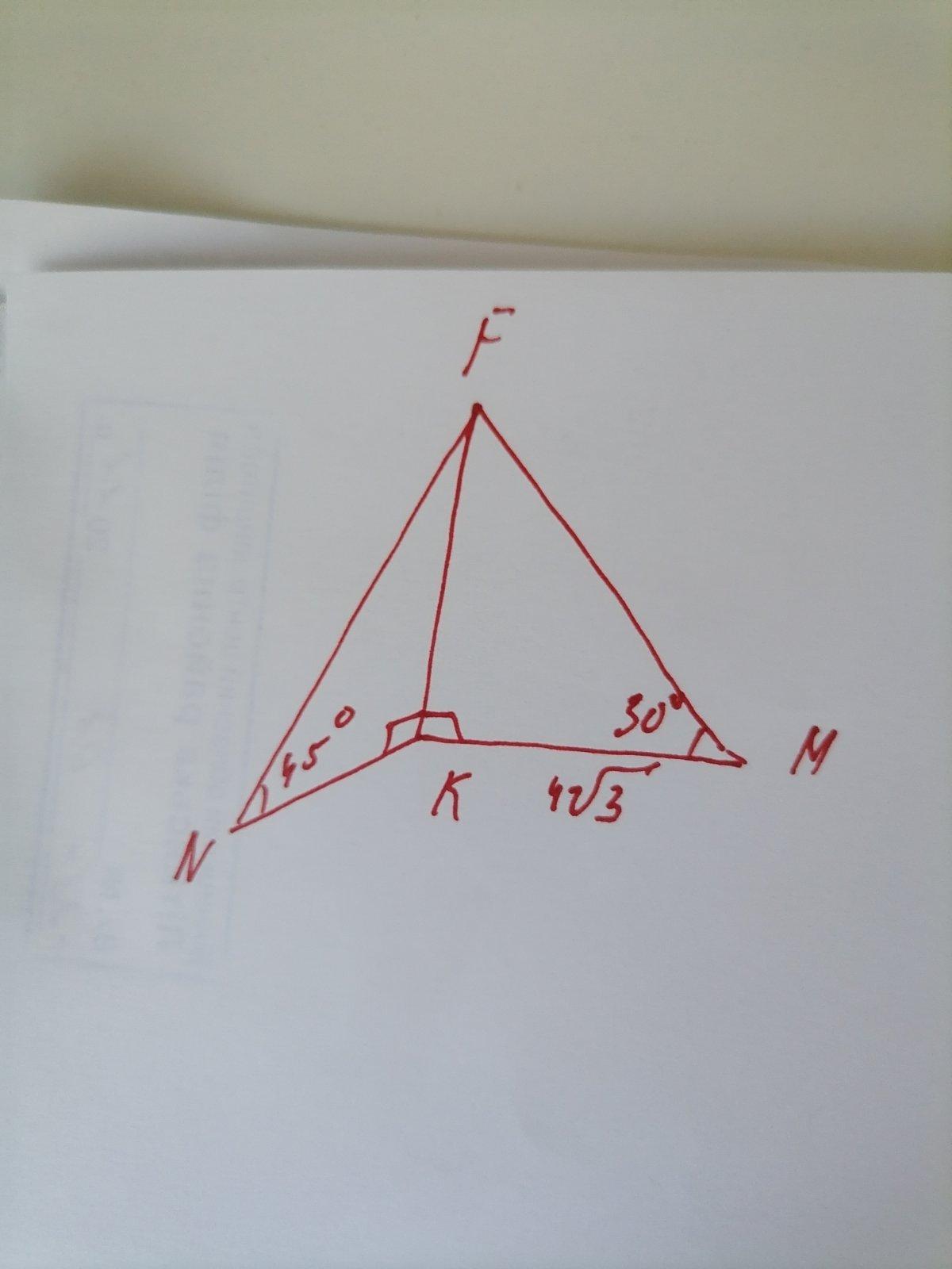 Так як трикутник FNK рівнобедрений (∠FNK = ∠NFK), то NK = FK = 4 cм
