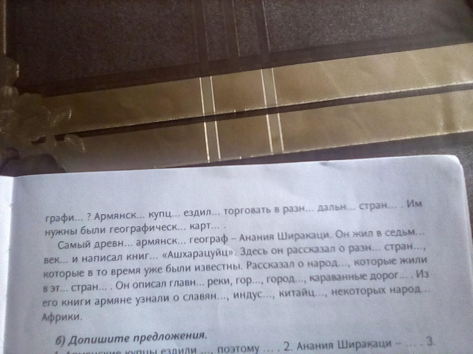 Самый древний армянский географ- Анания Ширакаци. Он жил в седьмом веке и написал книгу "Ашхарацуйц". Здесь он рассказал о разных странах, которые в то время были уже известны. Рассказал о народах, которые жили в этих странах. Он описал главные реки, горы, города, караванные дороги. Из его книги армяне узнали о славяней, индусов, китайцев, некоторых народов Африки.