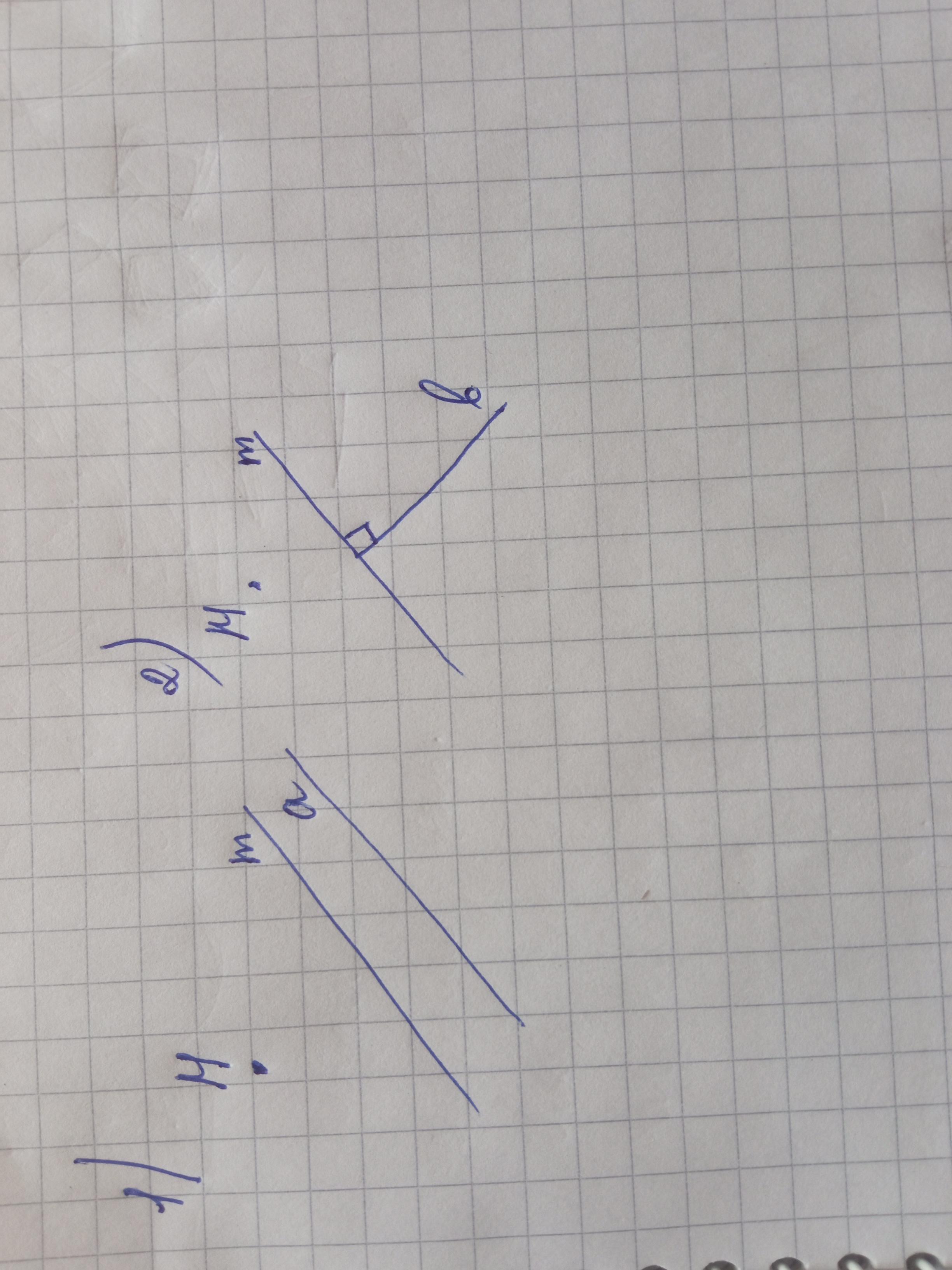 1) пряму а, паралельну прямій м; 2) пряму б, перпендикулярну до прямої м.