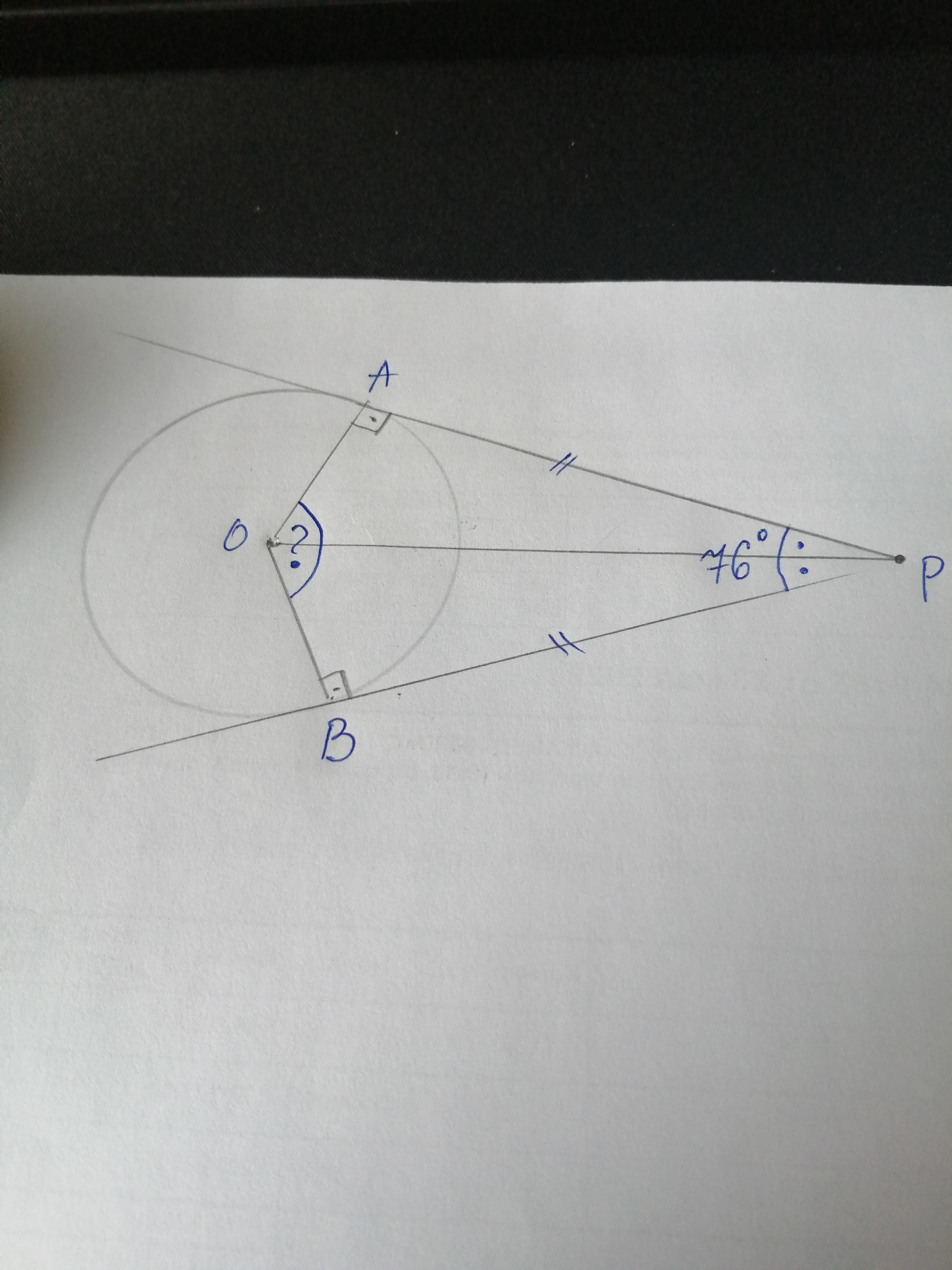 Из этого свойства следует, что АР=ВР и ∠ОРА=∠ОРВ=76°:2=38°