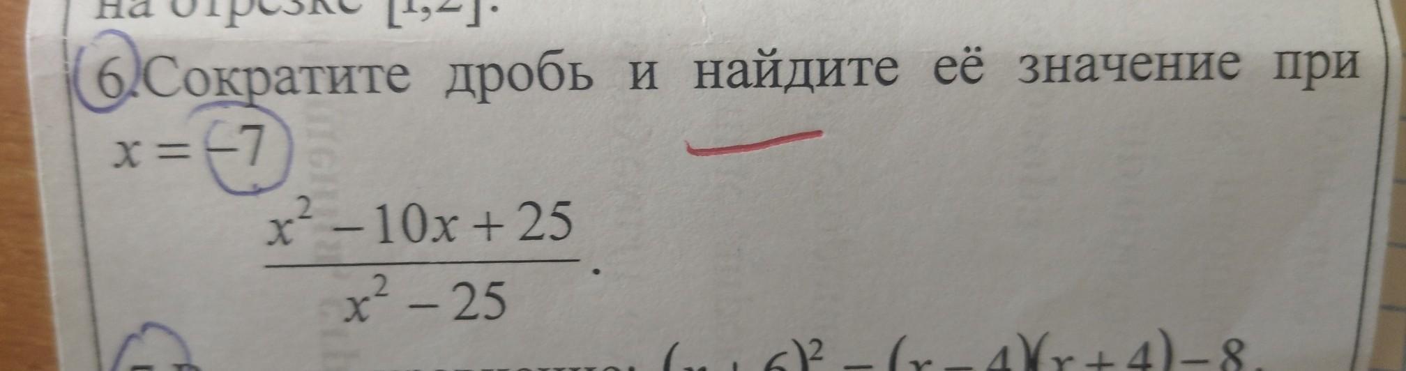 __(х-5)²_ = _(х-5)_ , при х=-7 _ (-7-5)_ = -12÷ (-2)=6