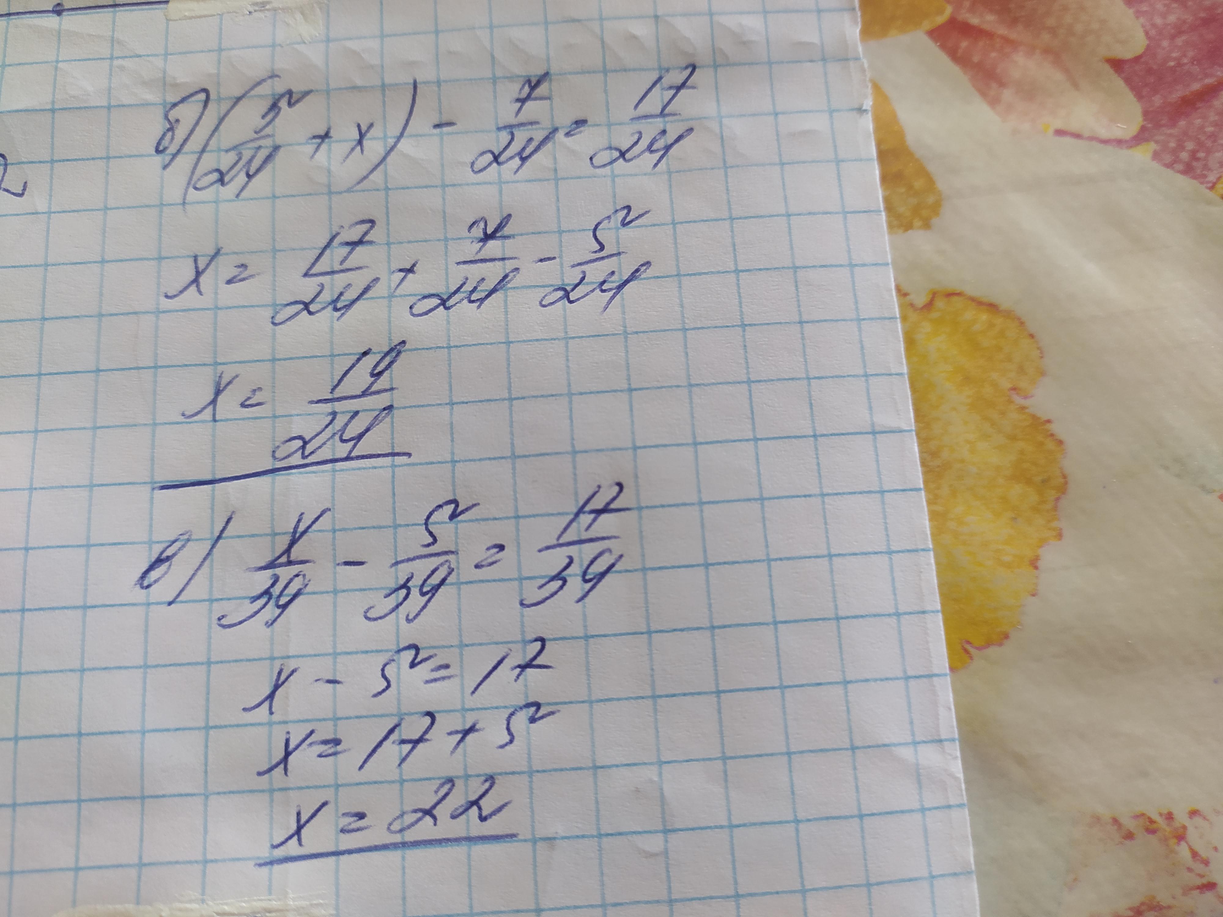 х/39 - 5/39 = 17/39