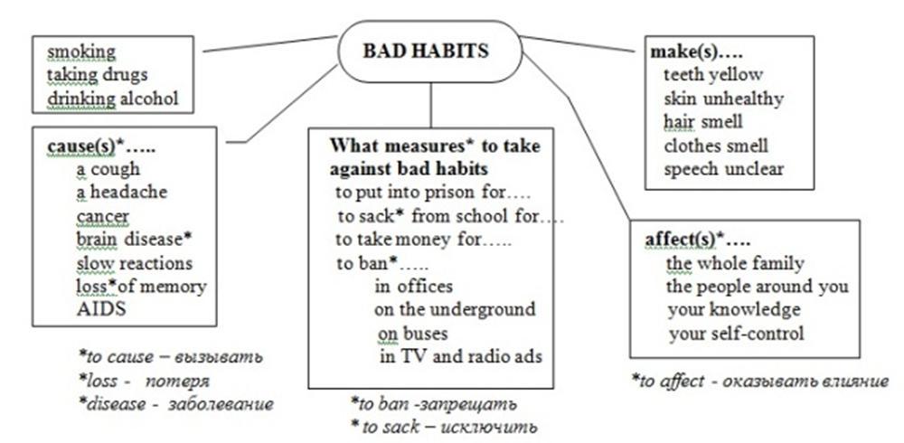 3) as a result bad habits affect your whole family and the people around you as well. On the other hand, smoking, taking drugs and drinking alcohol affect your knowledge and your self-control for sure.
