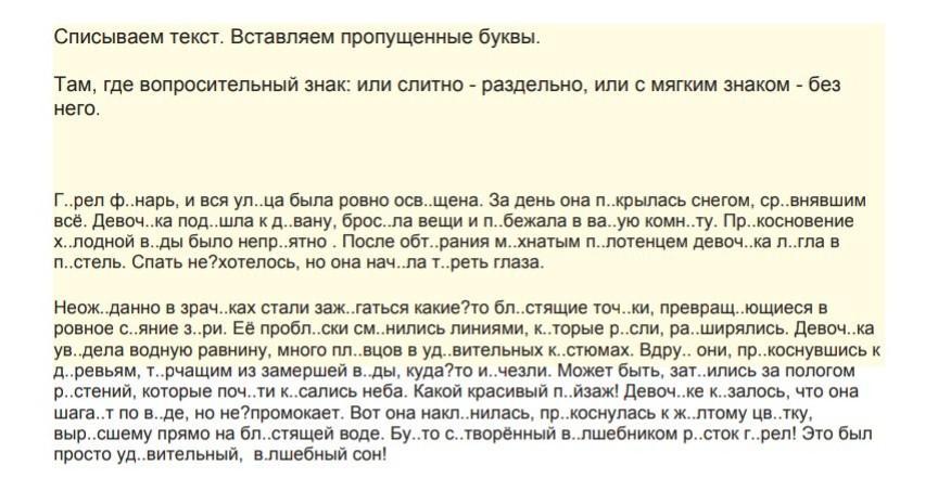 Горел фонарь, и вся улица была ровно освещена. За день она покрылась снегом, сровнявшим всё. Девочка подошла к дивану, бросила вещи и побежала в ванную комнату. Прикосновение холодной воды было неприятно. После обтирания мохнатым полотенцем девочка легла в постель. Спать не хотелось, но она начала тереть глаза.