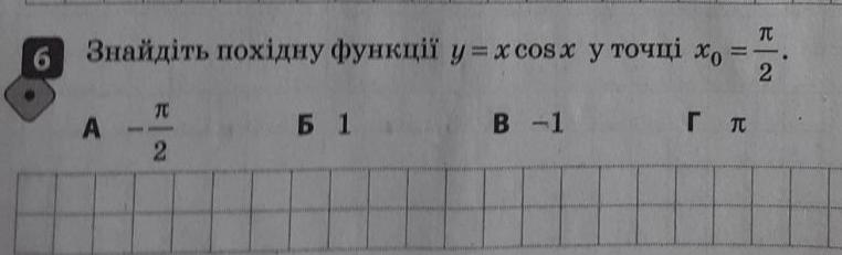 Найдите прозводную функции y = xcos(x) в точке xo = π/2 (Задание на фото + ответы там же!!)