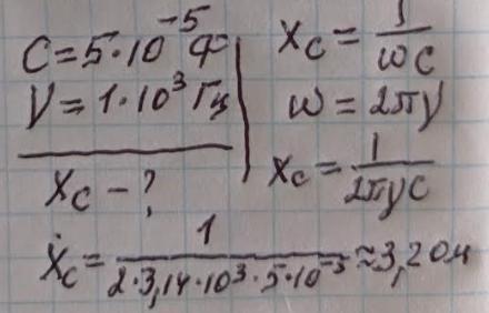 ДАМ 100 БАЛОВ!! визначте опір конденсатора ємністю 50 мкф на який подана змінна напруга частотою 1кгц