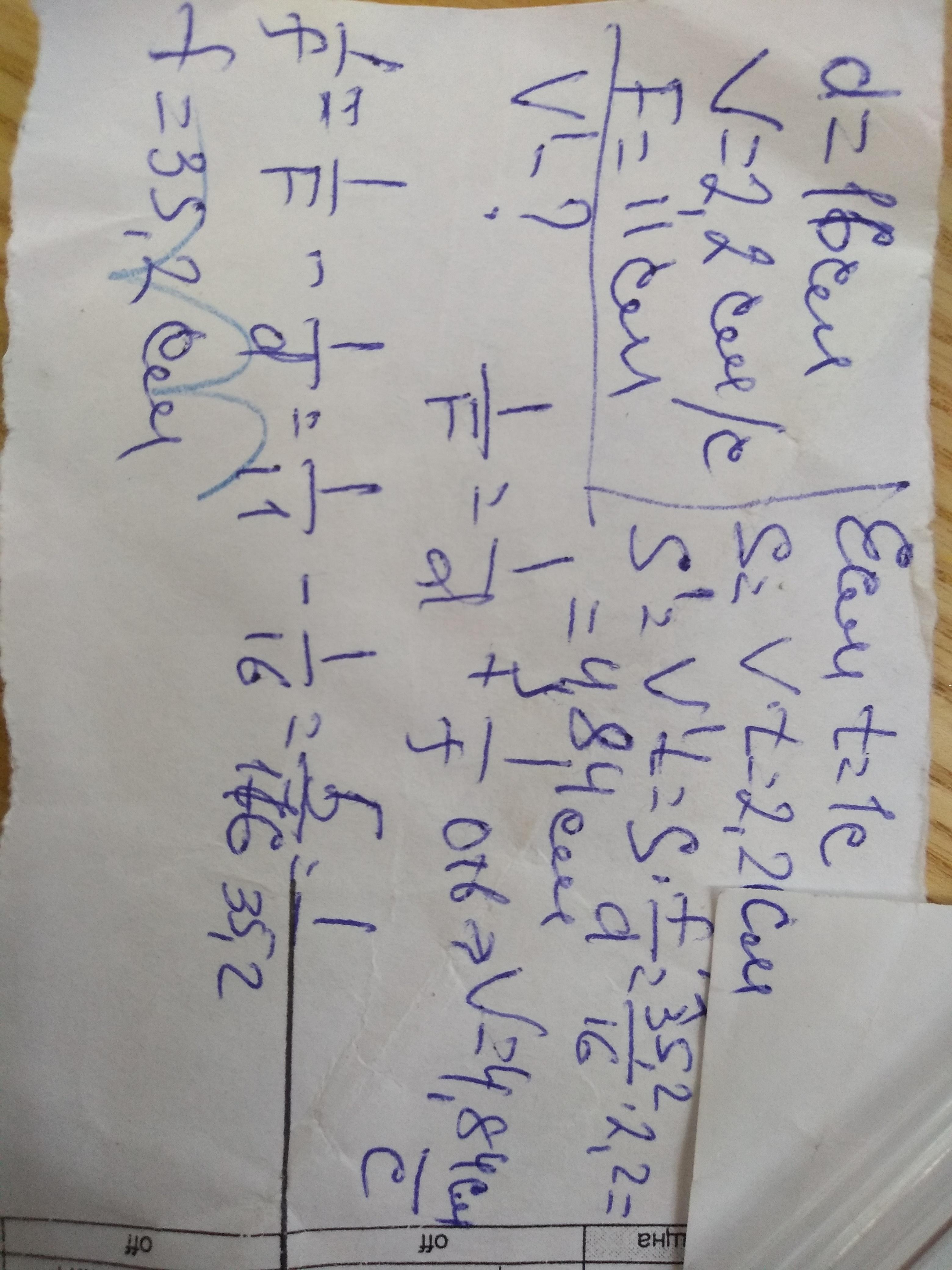 На расстоянии d=16 см от линзы, перпендикулярно главной оптической оси движется материальная точка со скоростью v=2,2 см/с фокусное расстояние линзы равно F=11 см. Определи, с какой скоростью движется изображение точки с другой стороны