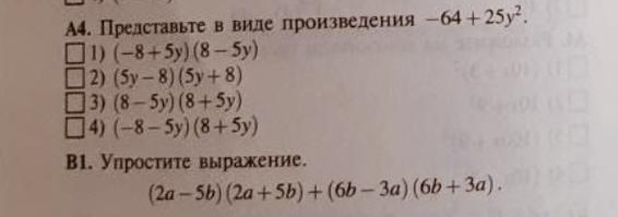 2) (5у - 8)(5у + 8) = 25у² + 40у - 40у - 64 = - 64 + 25у²