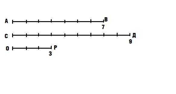 AB - 7 см, CD - 9 см, OP - 3 см.