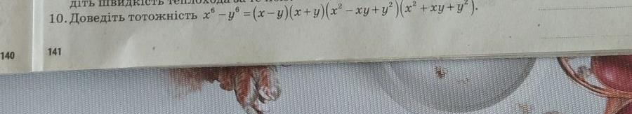 Ответ: тотожність полягає у тому що після = йде формула різниці кубів . І якщо це все перемножити вийде те що на початку.
