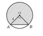 За даними рисунка знайдіть площу заштрихованого кругового сегмента, якщо точка 0 центр кола, 2 AOB=90°. OA=4.