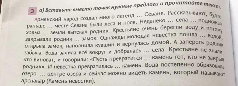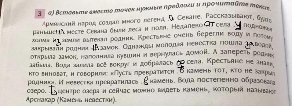 1. о Севане. 2. на месте Севана. 3. от села у подножья холма из земли. 4. на замок. 5. с водой. 6. добралась до села. 7. в камень тот. 8. в камень. в центре озера.