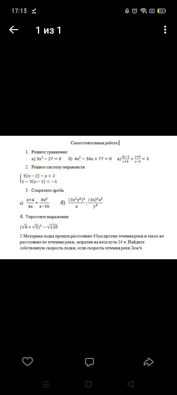 1296 - 4*4*77 = 1296 - 1232 = 64 (D>0 - 2 корня)