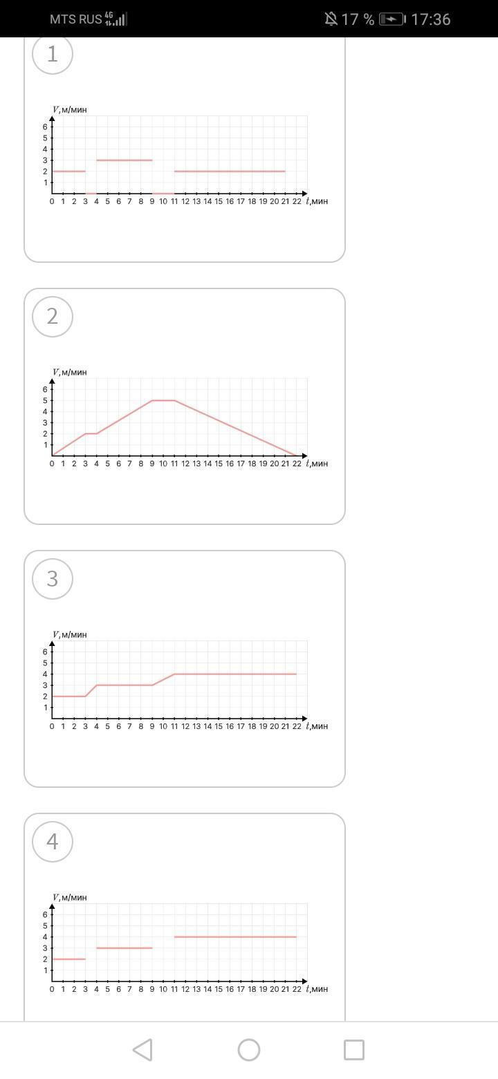 Выбери верный график движения муравья, соответствующий условиям задачи.