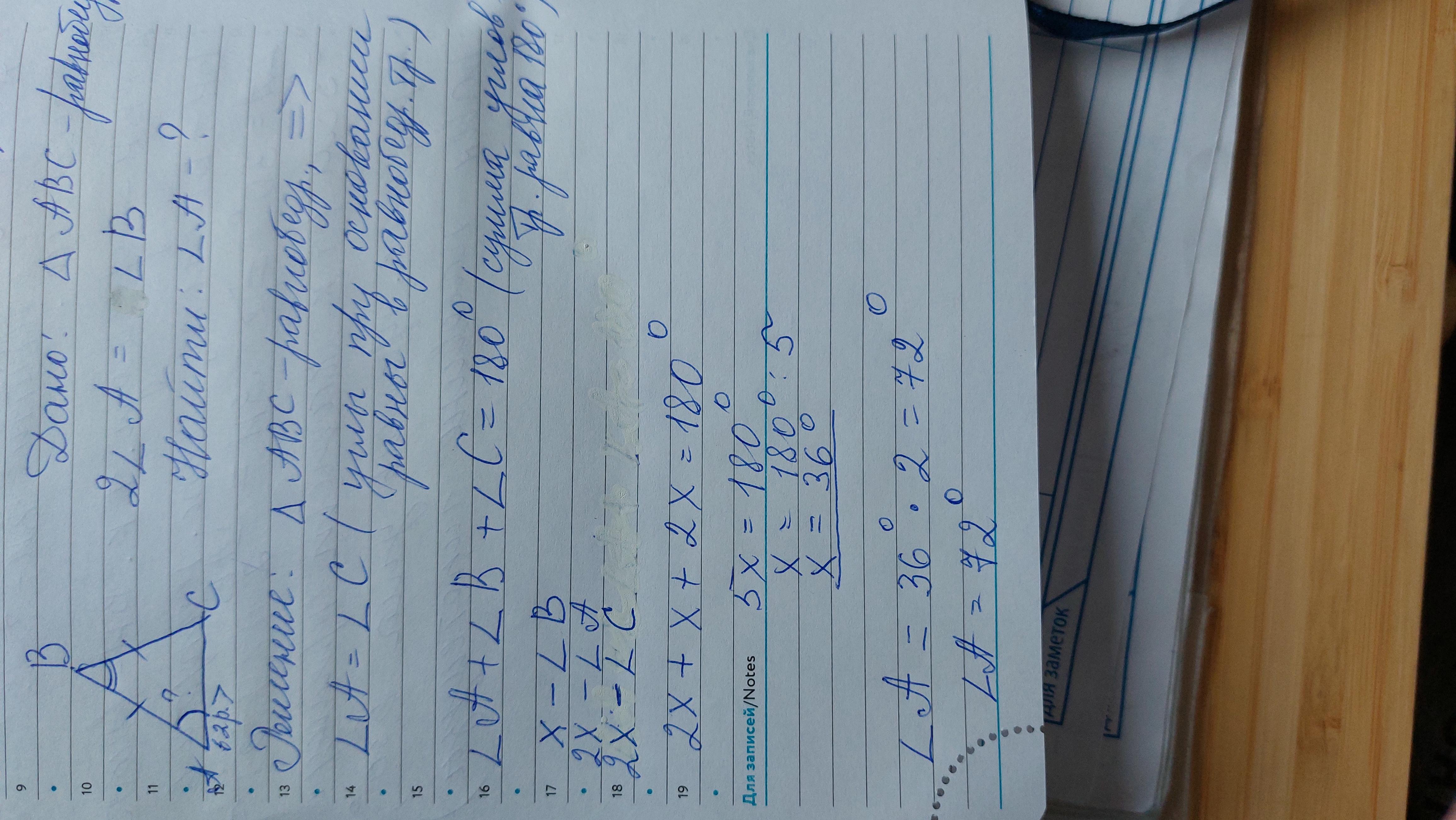 36 × 2 = 72° - угол при основании.