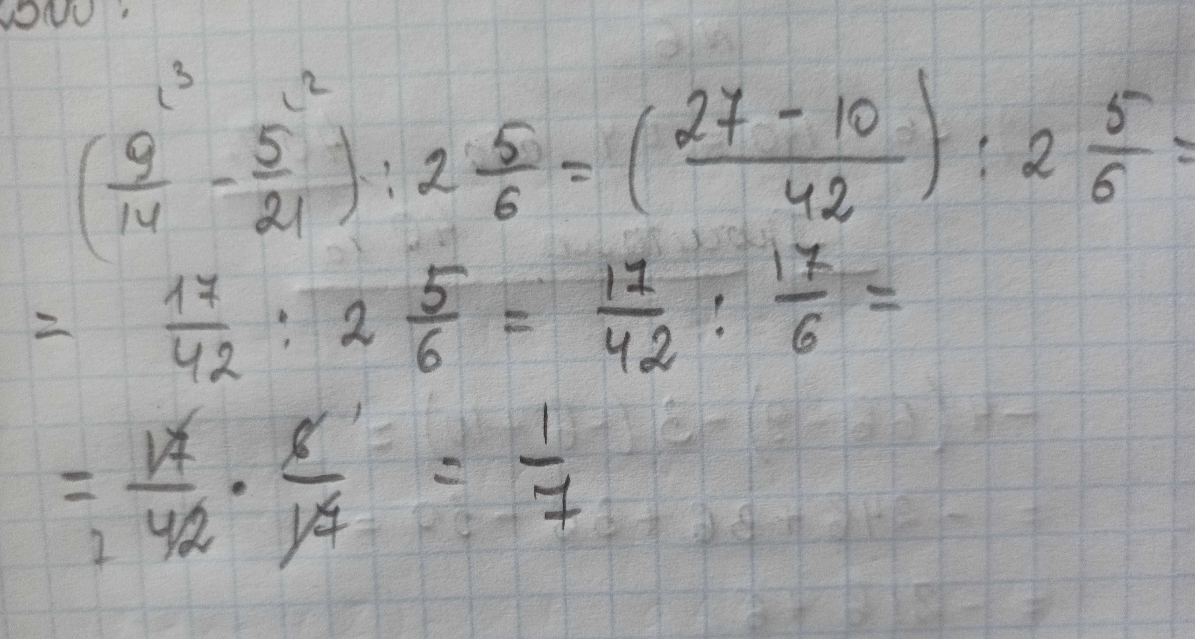 17/42 * 6/17 ( тут іде скорочення чисел 17 , а також 6 і 42)