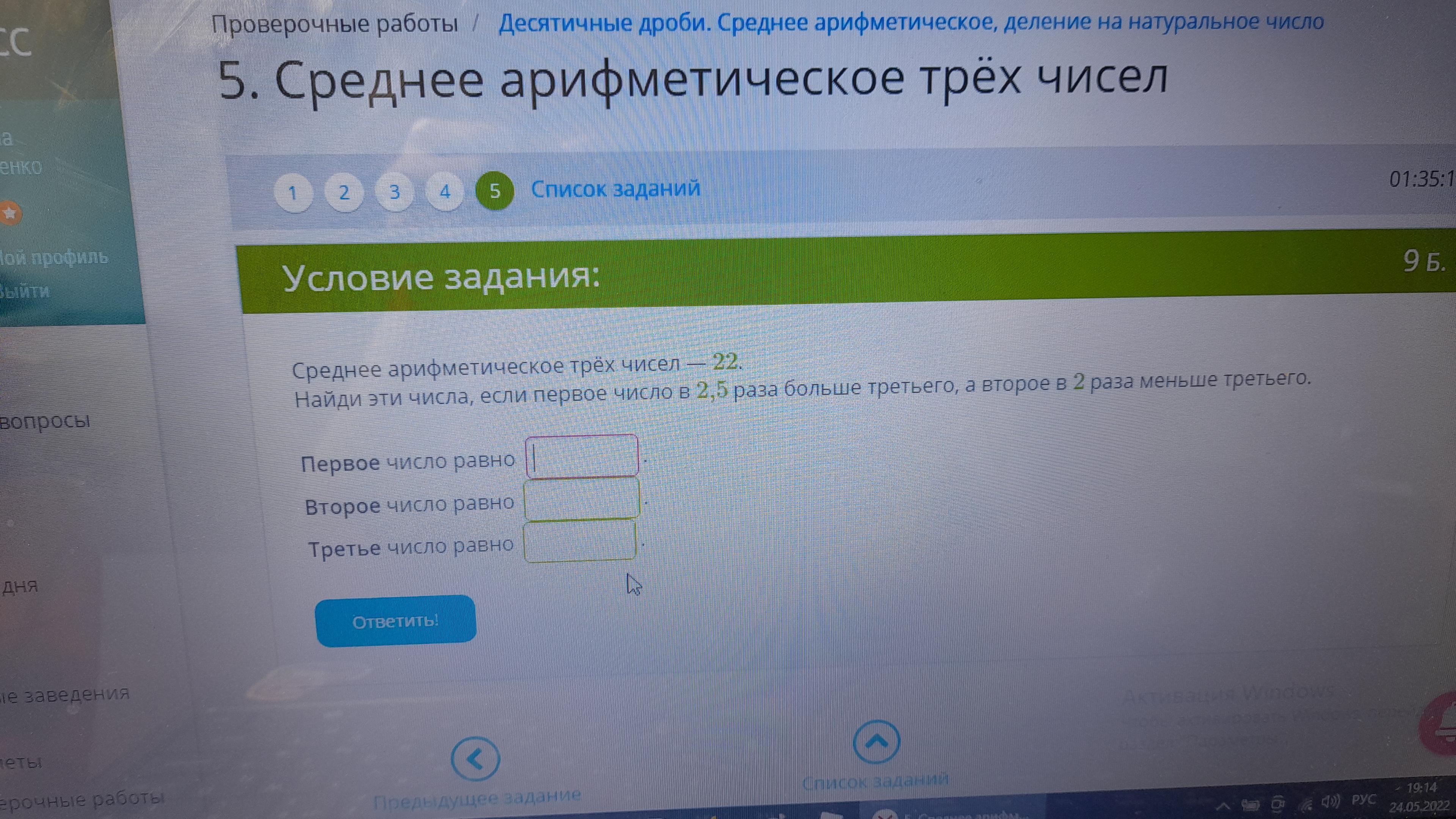 Среднее арифметическое трёх чисел-22