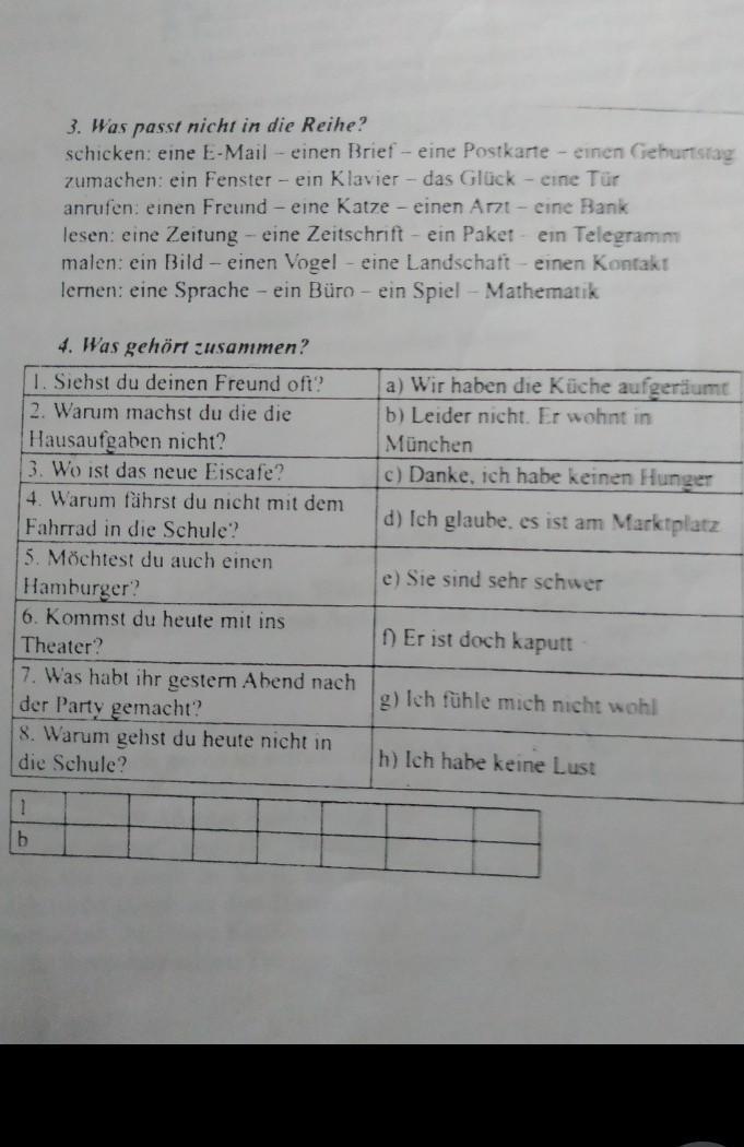 3. einen Geburstag ; das Glück ; die Bank ; ein Paket ; einen Kontakt ; ein Büro.