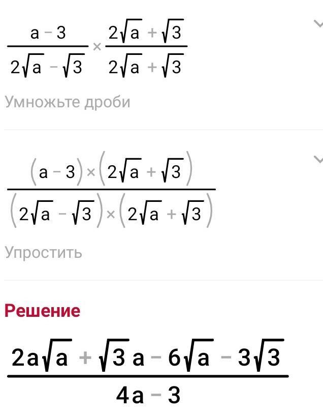 (2√а-√3) (2√а+√3) /2√3-а сократим отстается 2√а+√3