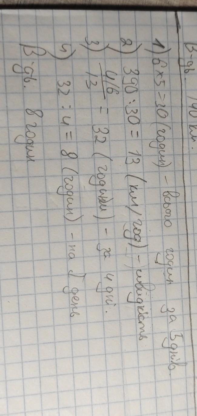 Велосипедист розрахував, що, перебуваючи в дорозі щодня по 6 год, він проїде 390 км за 5 днів. По скільки годин щодня він повинен бути в дорозі щоб за 4 дні проїхати 416 км тій самій швидкості?