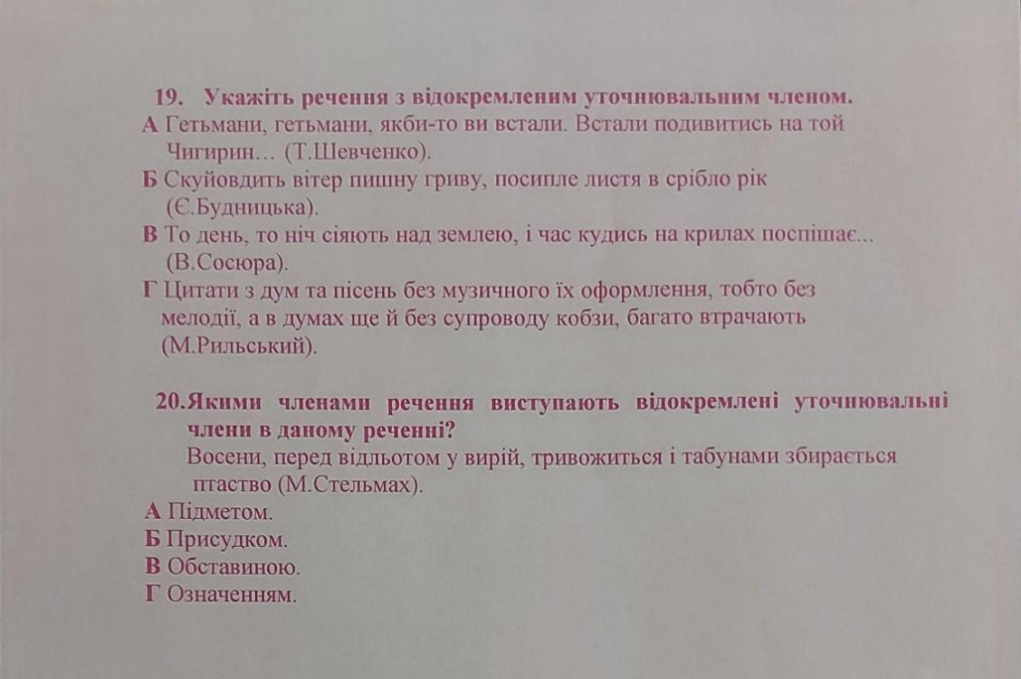Правильні відповіді: