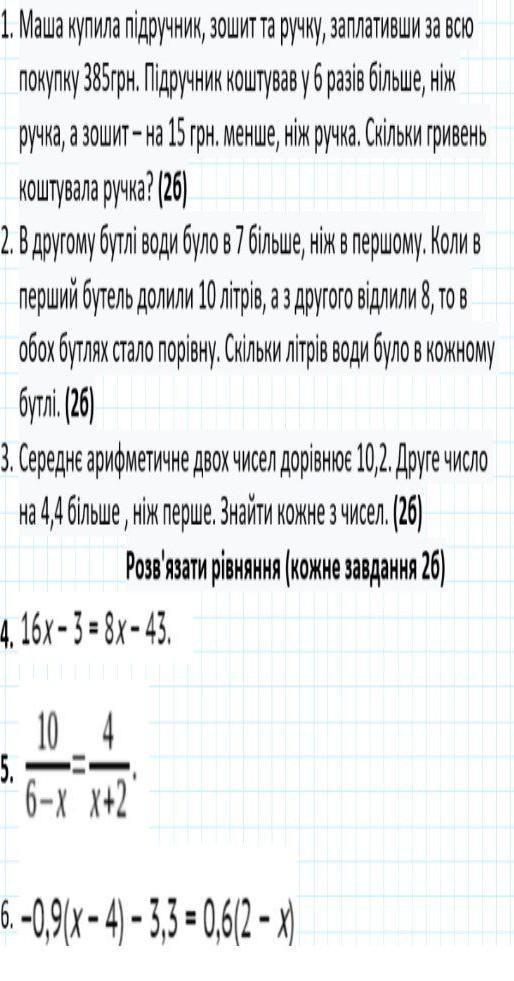 Нехай ручка коштує - х грн, тоді підручник - 6х грн, а зошит х - 15 грн. Складемо рівняння:
