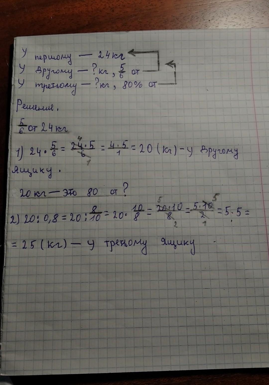 1) 24 * 5 : 6 = 10(кг) - було в другому ящику;