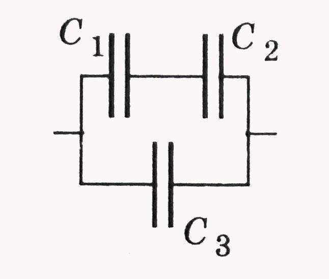 Визначити загальну ємність трьох конденсаторів, з'єднаних за схемою, зображеною на малюнку, якщо С1 = 10 мкФ, С2 = 40 мкФ, С3 = 12 мкФ.