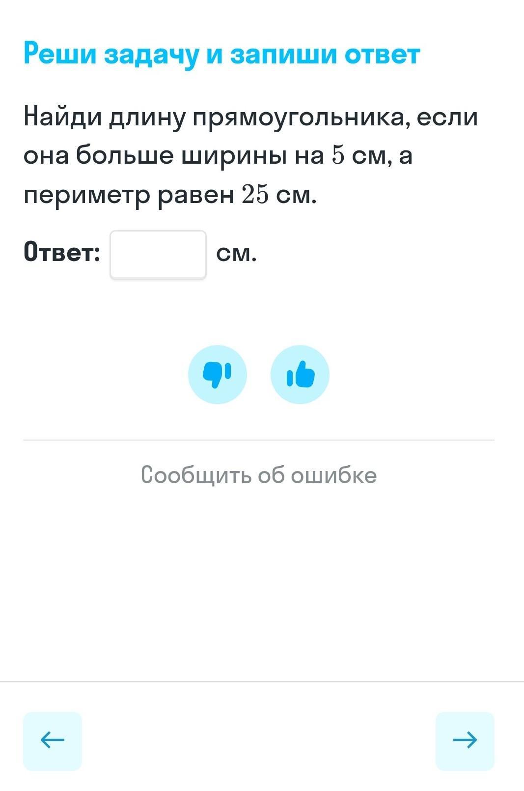 Длина = х + 5 = 3,75 + 5 = 8,75 см