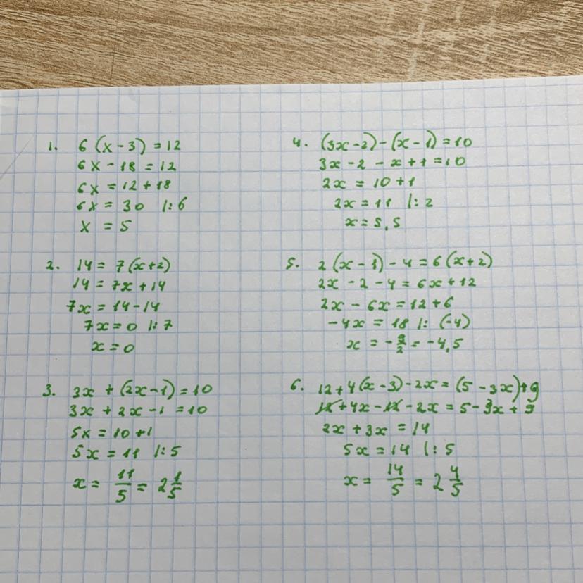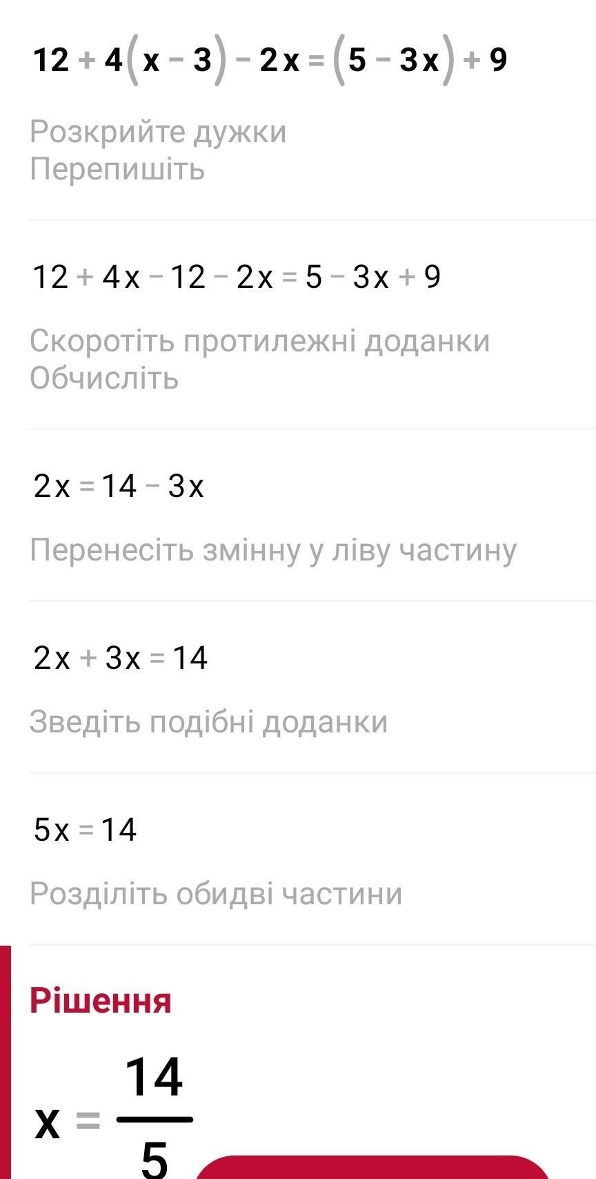 6. 12 + 4(х – 3) – 2х = (5 – 3х) + 9