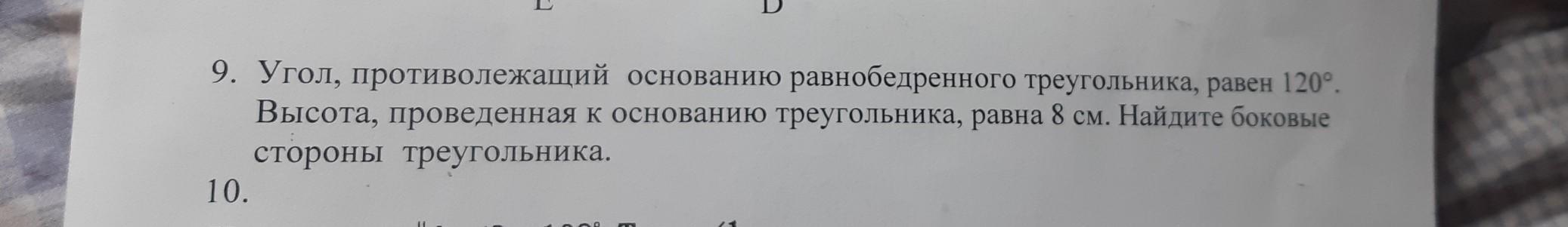 если вершина = 120, то углы при основании 180-120=60, 60/2=30⁰(угол при основании)