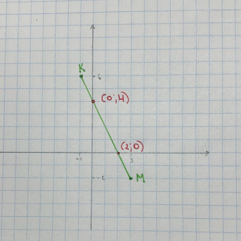 Точка KM пересекается в координатах (0;4) и (2;0)
