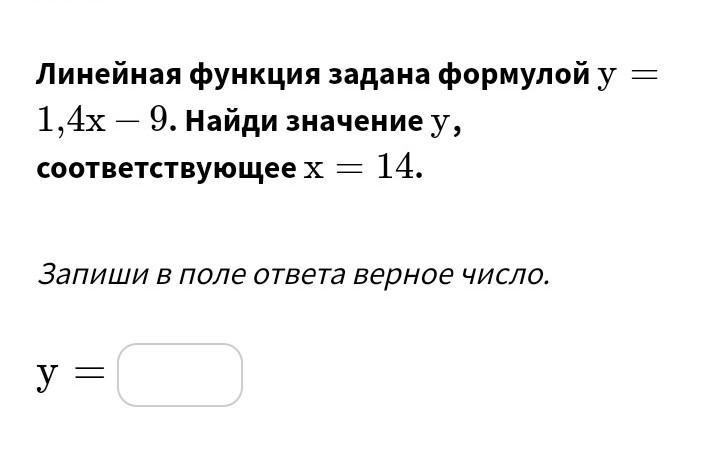 у = 1,4 · 14 - 9 = 19,6 - 9 = 10,6