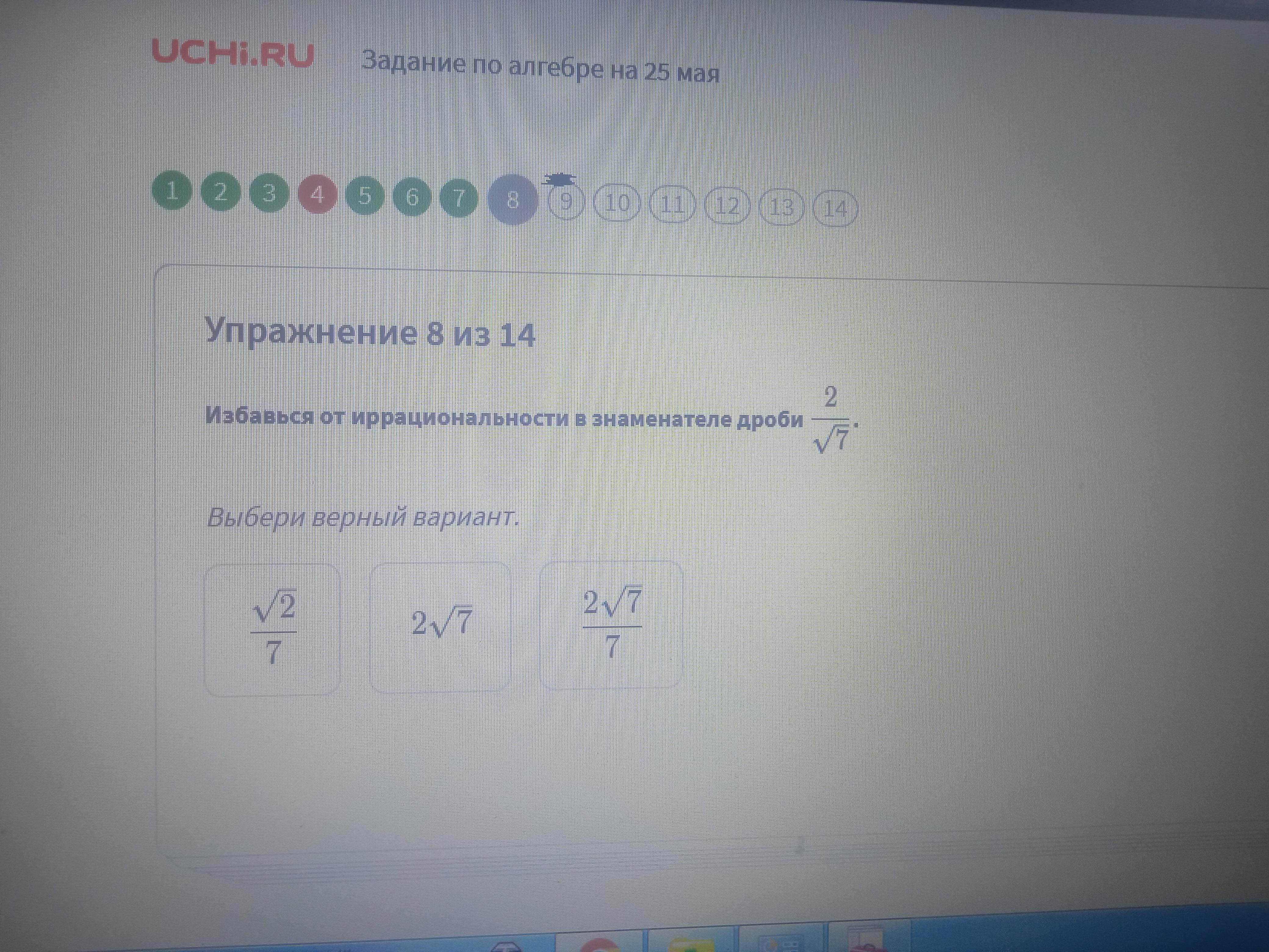 просто домнажаем на √7 все и получаем 2√7/7 все!