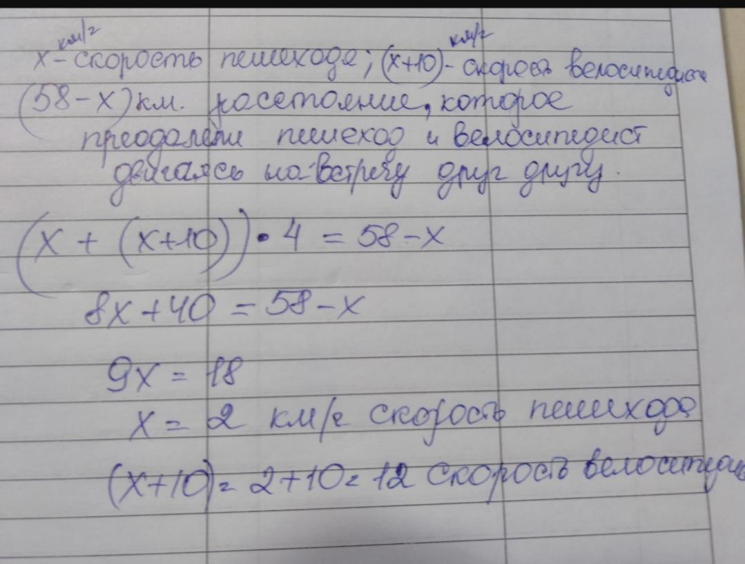 з пункту а в пункт в зі швидкістю 14 км/год виїхав велосипедист а через 2 години після нього з пункту В зі швидкістю 4 км/год вийшов пішохід через скільки годин пішохід буде на відстані 73 км від велосипедиста даю 60 балов