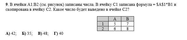 - $A$1 - абсолютная ссылка (при копировании не изменяется)