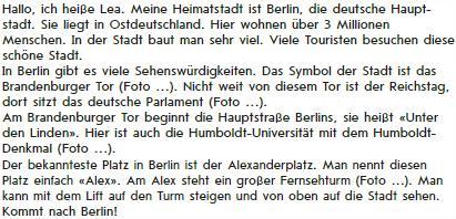 Привіт, мене звуть Леа. Моє рідне місто Берлін, столиця Німеччини. Це в Східній Німеччині. Тут проживає понад 3 мільйони людей. У місті йде багато будівельних робіт. Багато туристів відвідують це прекрасне місто.