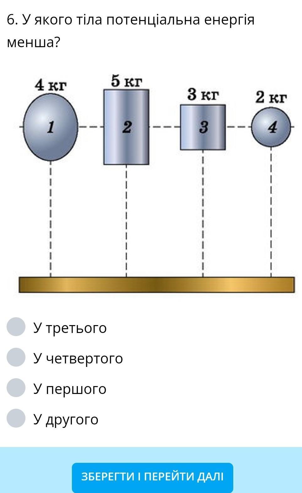 E=mgh, g и h здесь равны, а масса четвёртого меньше всех.
